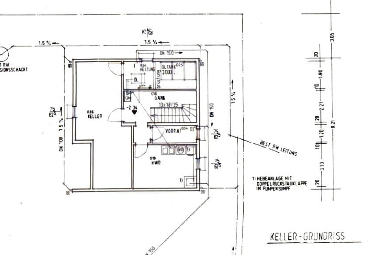 Der hochwertige, vollständig geflieste Keller bietet praktische Räume wie Vorratskeller, Waschraum und Heizungsraum.